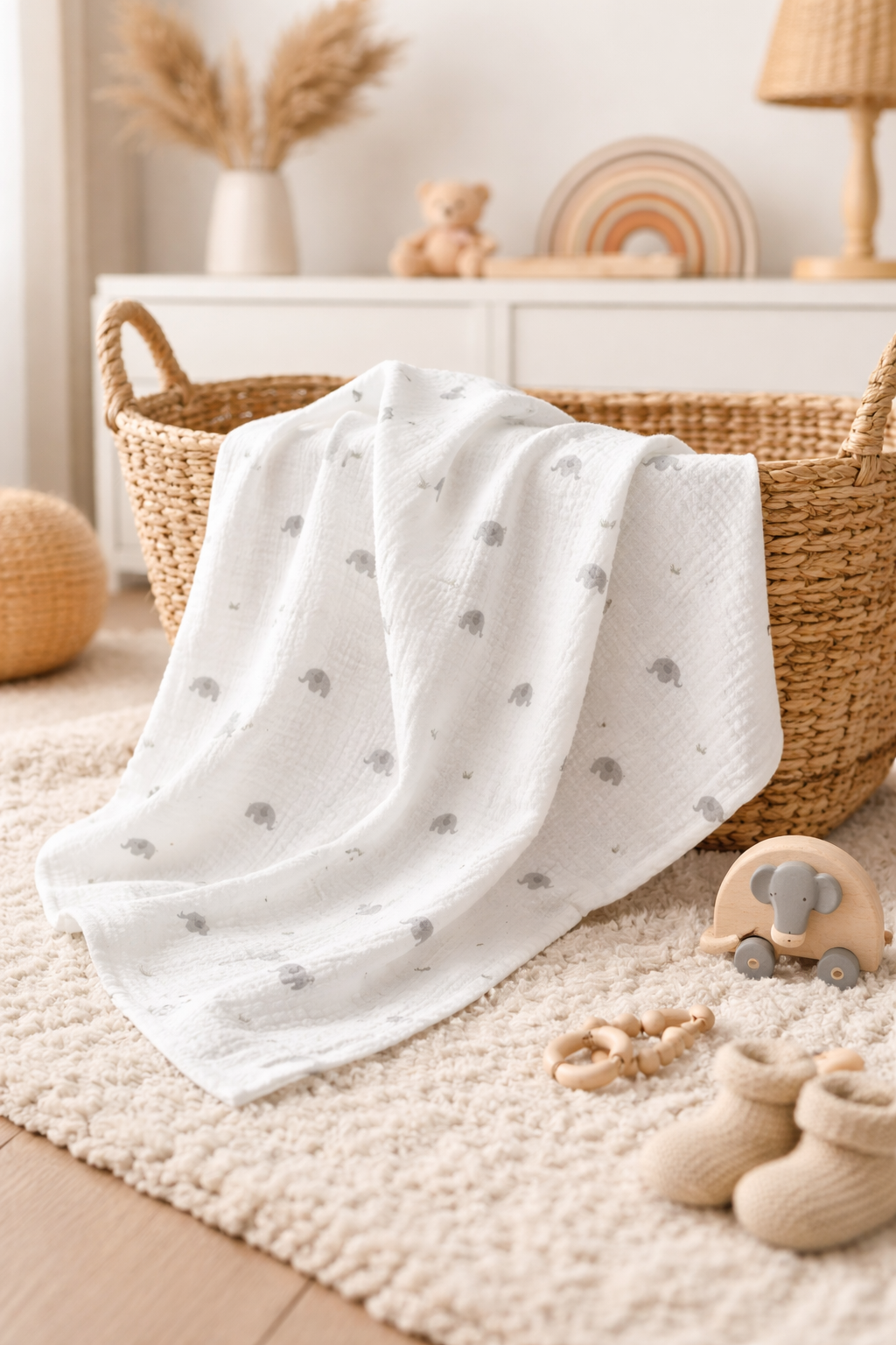 Muslin je jedan od najcjenjenijih prirodnih materijala za bebinu opremu. Njegova prozračna, otvorena struktura tkanja omogućuje pravilnu cirkulaciju zraka i smanjuje rizik od pregrijavanja. Naš dupli muslin prekrivač: