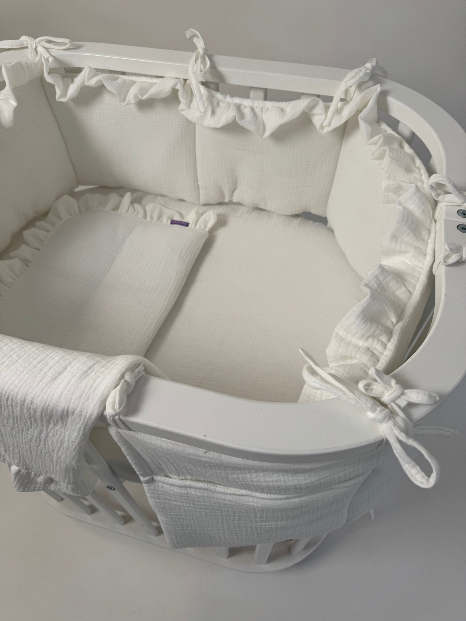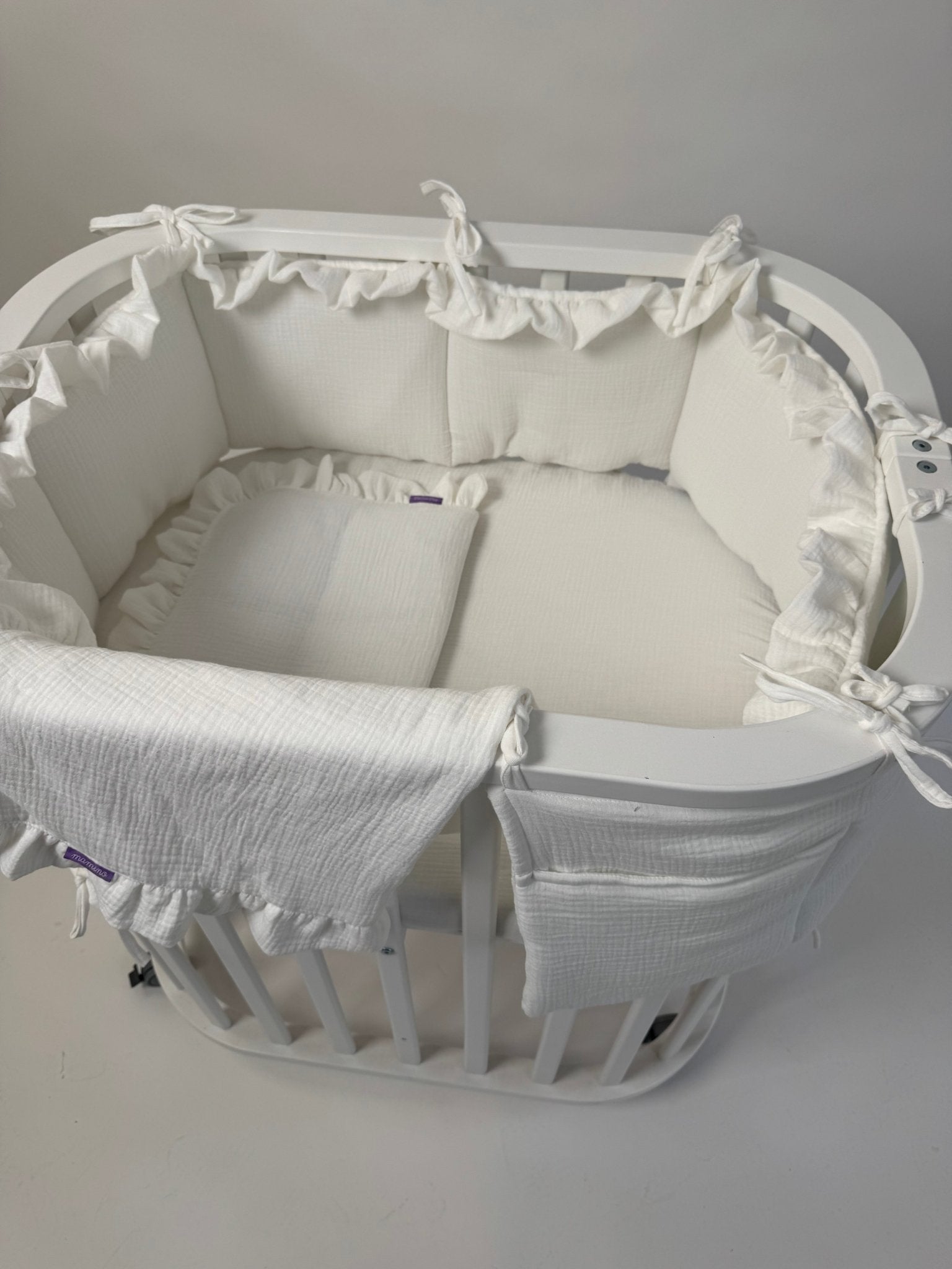 Zaboravi na traženje zasebnih komada – ovaj set sadrži sve što trebaš za krevetić! Od praktičnih detalja do stylish završnog touch-a, svaki dio je pažljivo osmišljen kako bi bebin kutak bio udoban, siguran i prekrasan.